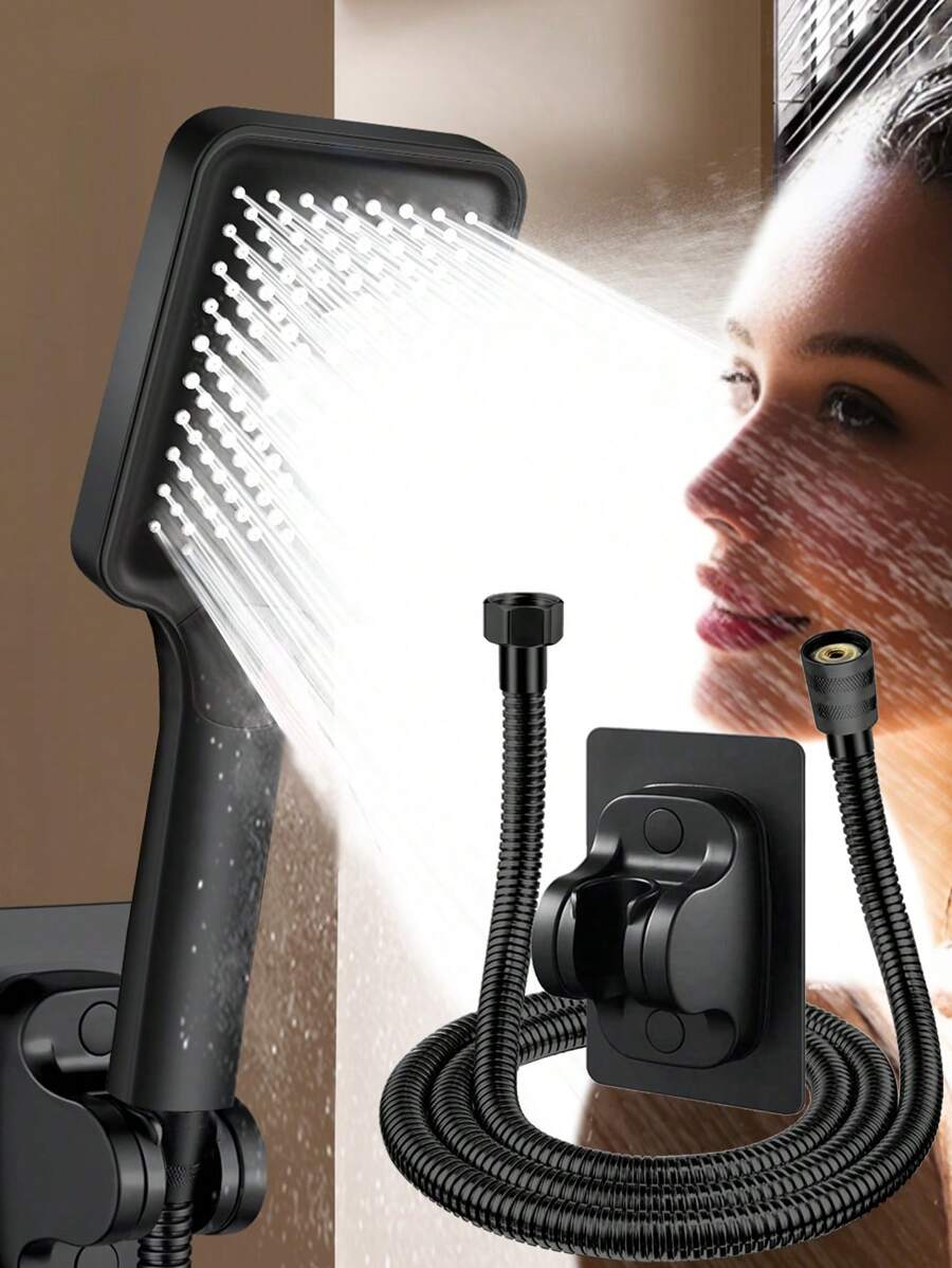 (单喷头/3件套) 节水可调节淋浴喷头,3档设置,1.5米不锈钢软管和无孔ABS淋浴支架,适用于浴室、淋浴房、沐浴淋浴喷头、方形淋浴喷头