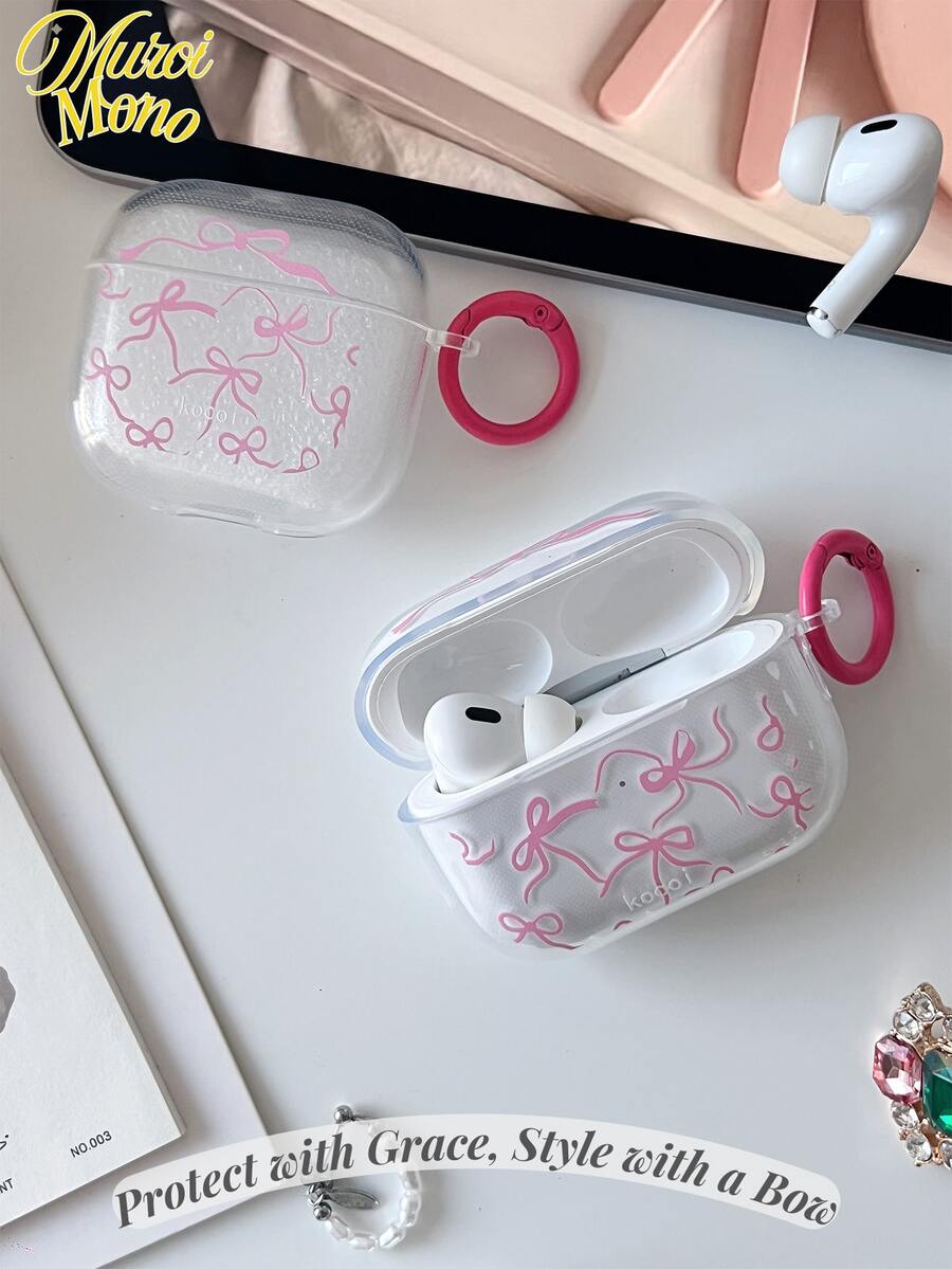 <优雅保护,蝴蝶结时尚>,1 个粉色蝴蝶结透明 TPU 耳机盒,兼容 Apple 系列耳机