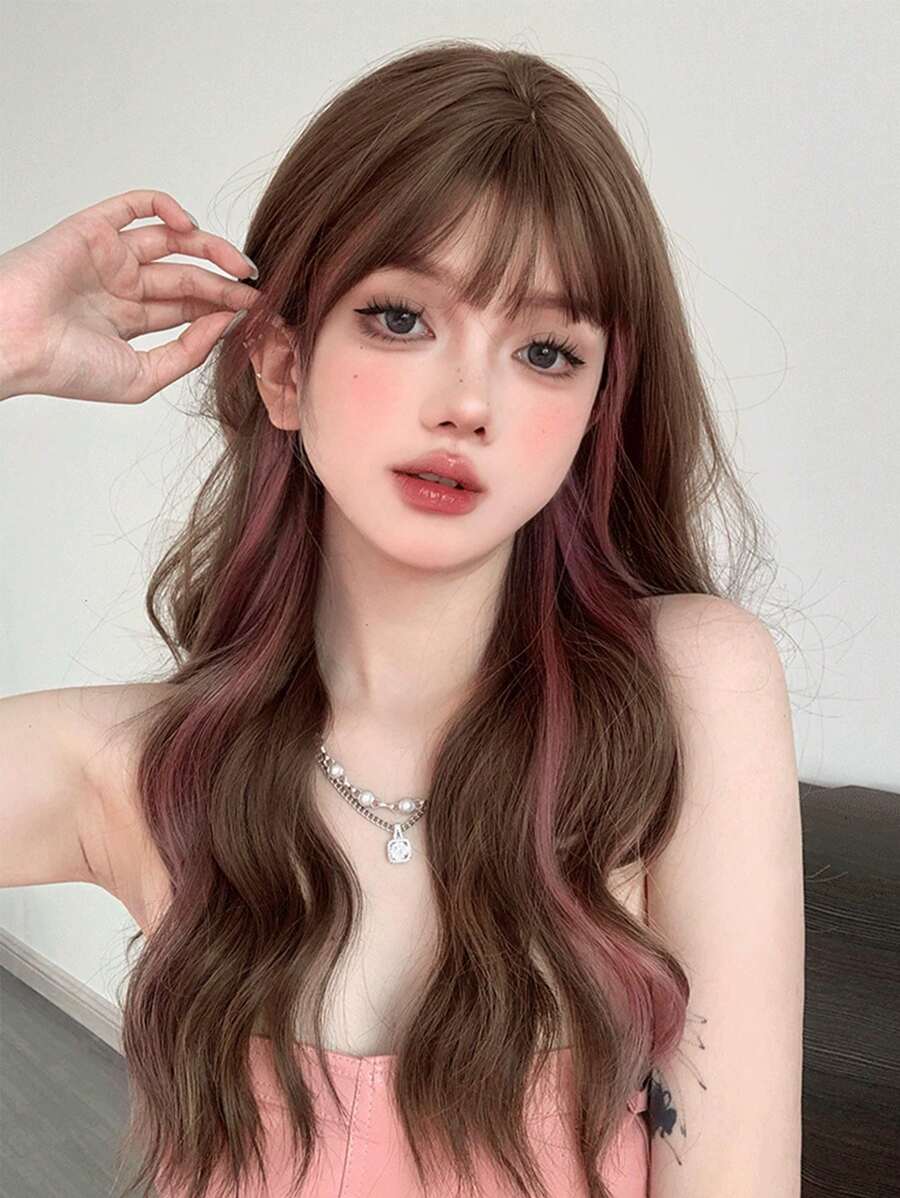 【韓式微波浪大波浪粉色高光】女長捲髮假髮
