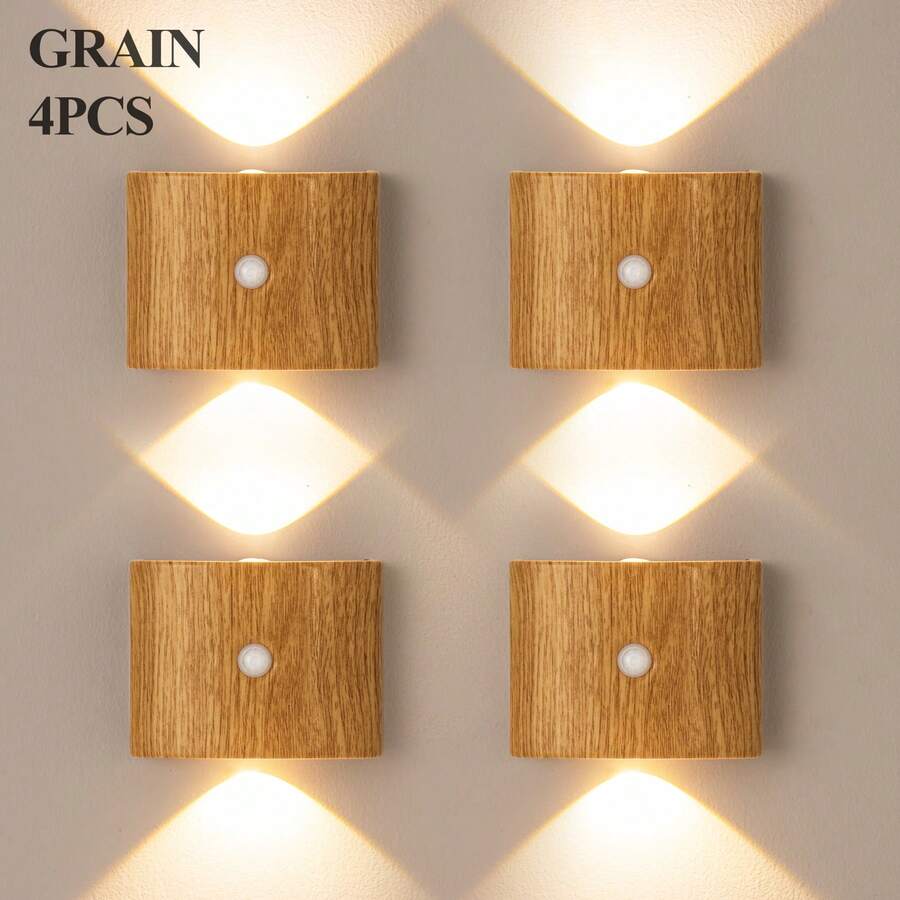 1/2/4 件装双头 LED 感应壁灯,带人体感应功能的 LED 夜灯,室内感应壁灯,无线 LED 壁灯,壁灯,电池供电,三色可调光,适用于客厅、卧室、走廊 - 现代设计(1200mAh),可旋转,便携,易于安装