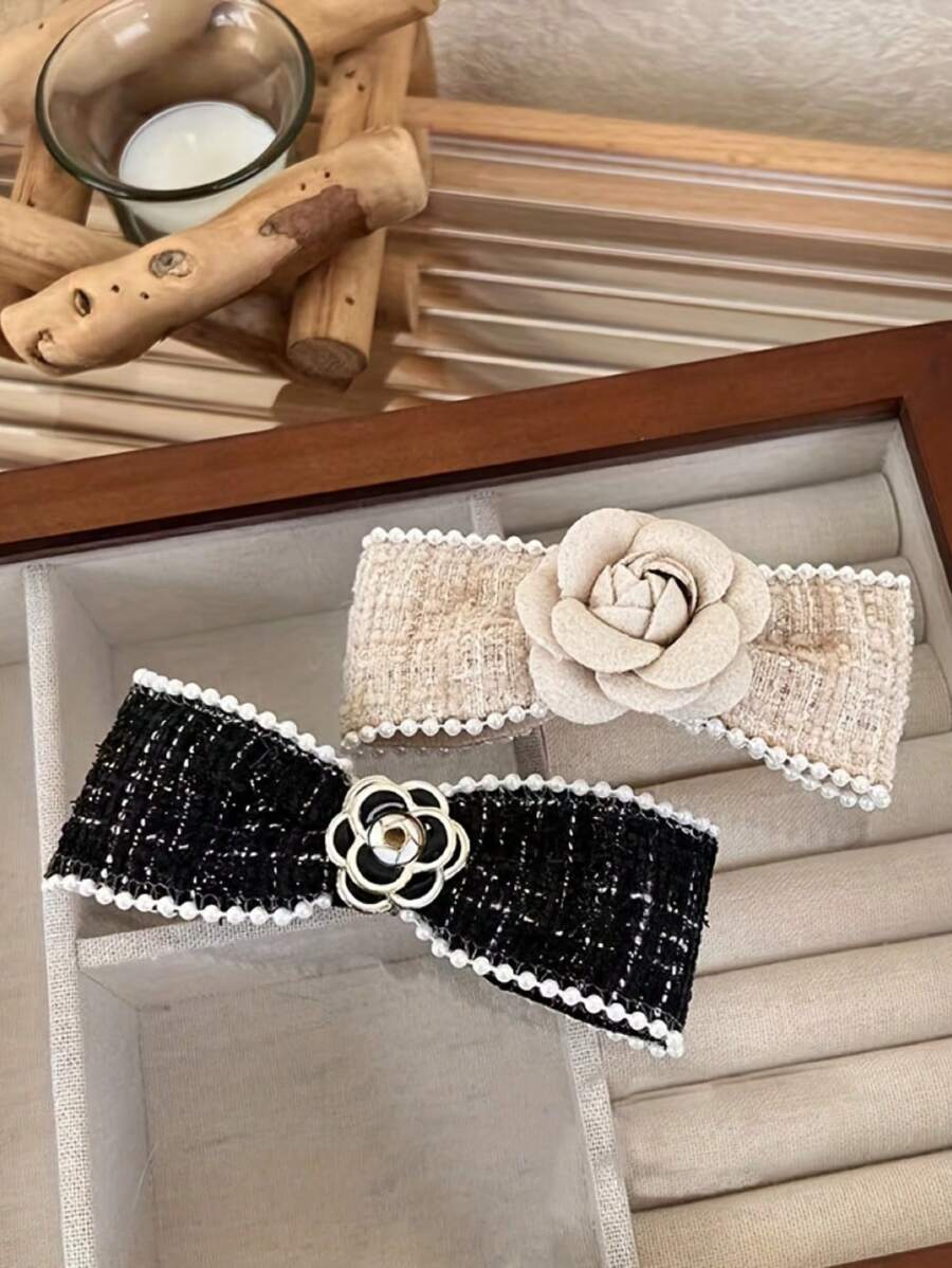 1/2个复古法式花卉蝴蝶结布艺发夹,柔软山茶花发卡,优雅发饰,女士礼物