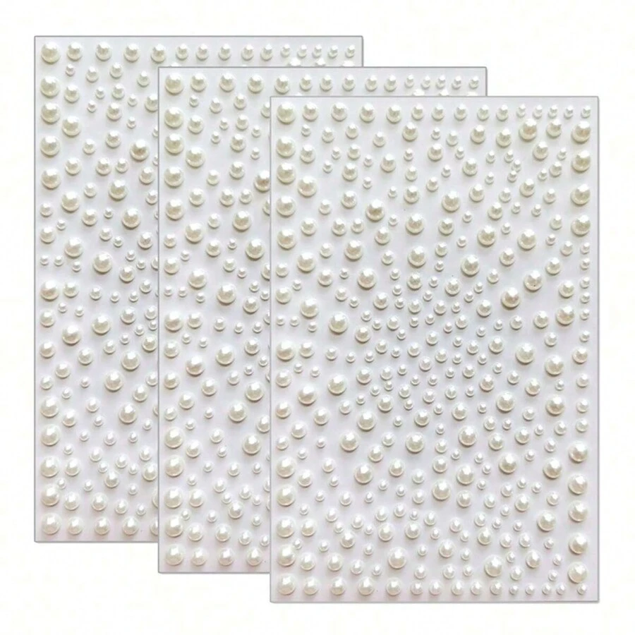 1/3 张,共 325/975 件白色珍珠和水钻贴纸,尺寸 3mm/4mm/5mm/6mm,采用塑料 ABS 材料制成 - 3D 粘合贴纸,适用于化妆、发型、面部、指甲、装饰品或礼物