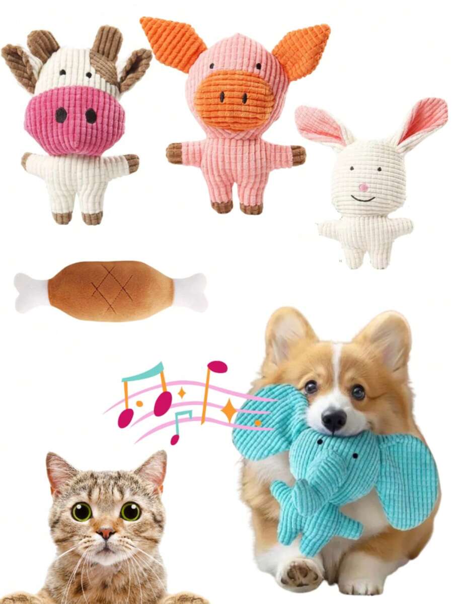 1/5 件套毛绒互动吱吱咬嚼玩具,适用于狗和猫,清洁牙齿,高强度耐用,优质材料,包含声音装置以吸引宠物