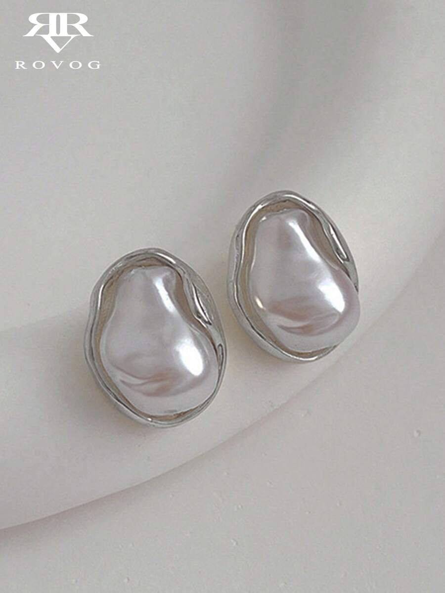 1 对不对称几何简约甜美个性化女士仿珍珠耳钉,适合日常佩戴