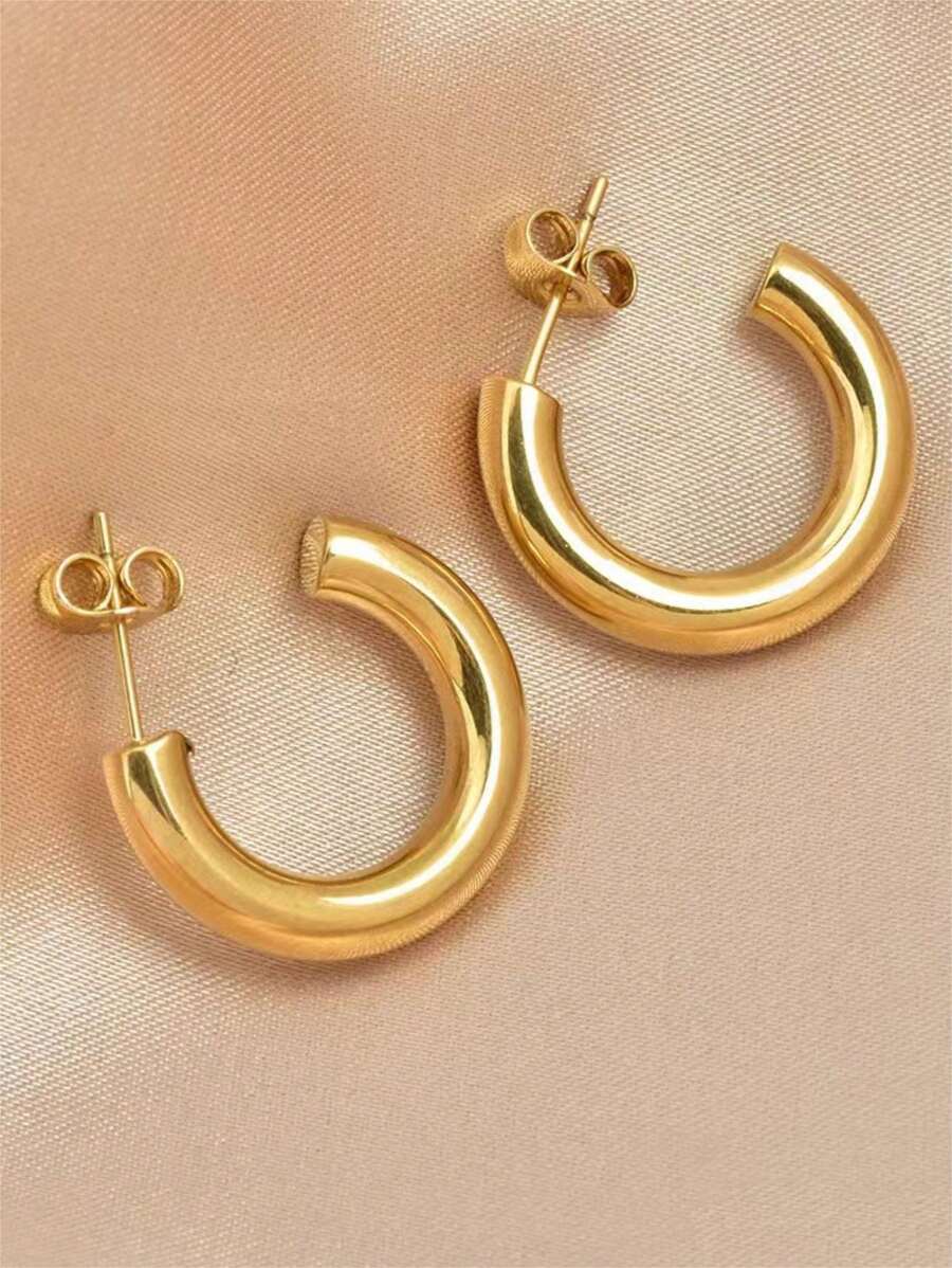 1 对 C 形简约奢华不锈钢 18K 镀金环状耳环,适合女性参加宴会、日常通勤和各种场合佩戴