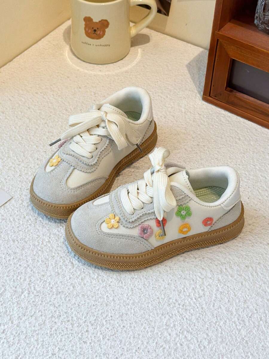 1双校园风儿童运动鞋蕾丝花边女童高颜值运动鞋轻便软底儿童溜冰鞋2025新款时尚训练鞋