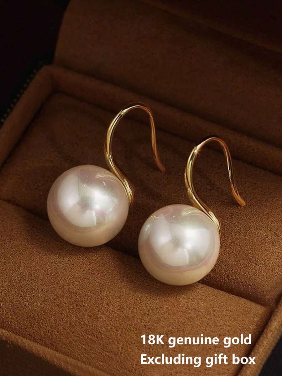 一对优雅简约百搭铜合金高品质珍珠耳钉,适合女性日常通勤、节日、订婚、晚宴、婚礼和宴会等场合佩戴(18K镀金)