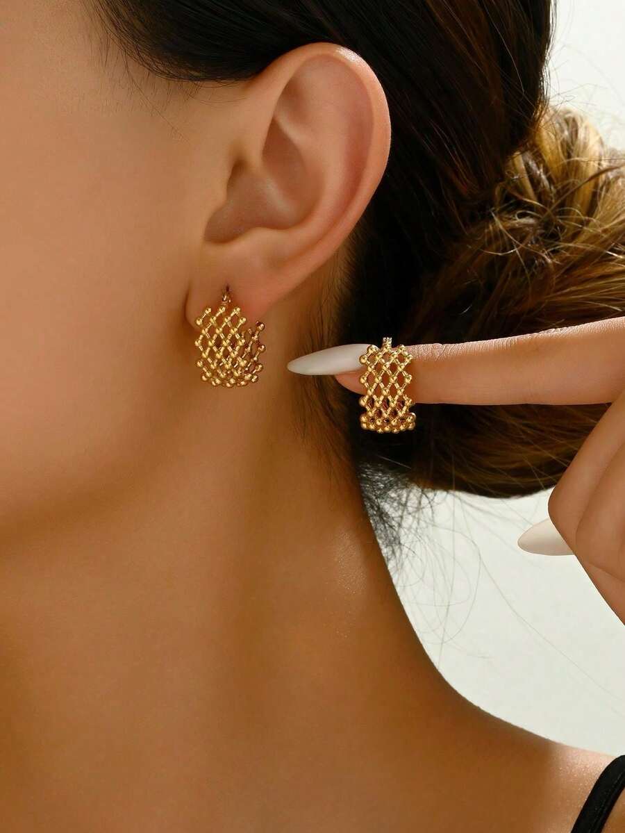 • 1对时尚简约镂空网格设计耳环,休闲通勤风格,女士款 - A - 查看 14