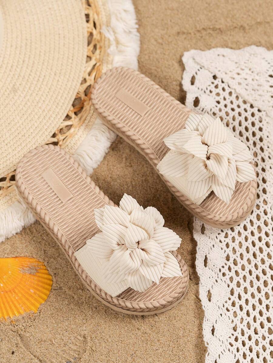 1 双女童花朵装饰轻便时尚户外沙滩拖鞋,简约设计,适合儿童夏季
