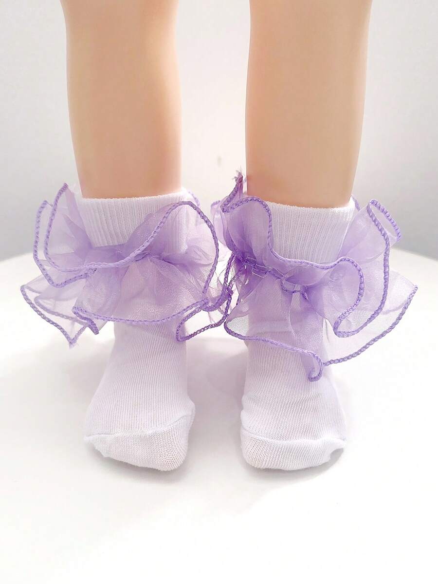 1 双女童荷叶边下摆中筒袜,适合日常基本搭配