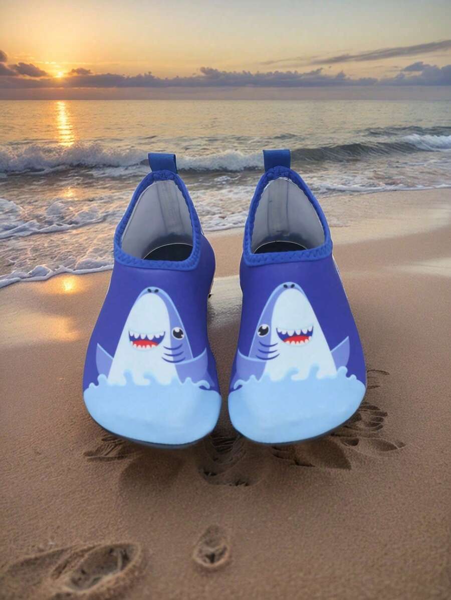 1双儿童夏季水鞋,户外水鞋,瑜伽鞋,卡通防滑透气沙滩鞋,训练鞋,女童卡通图案圆头布艺运动水袜