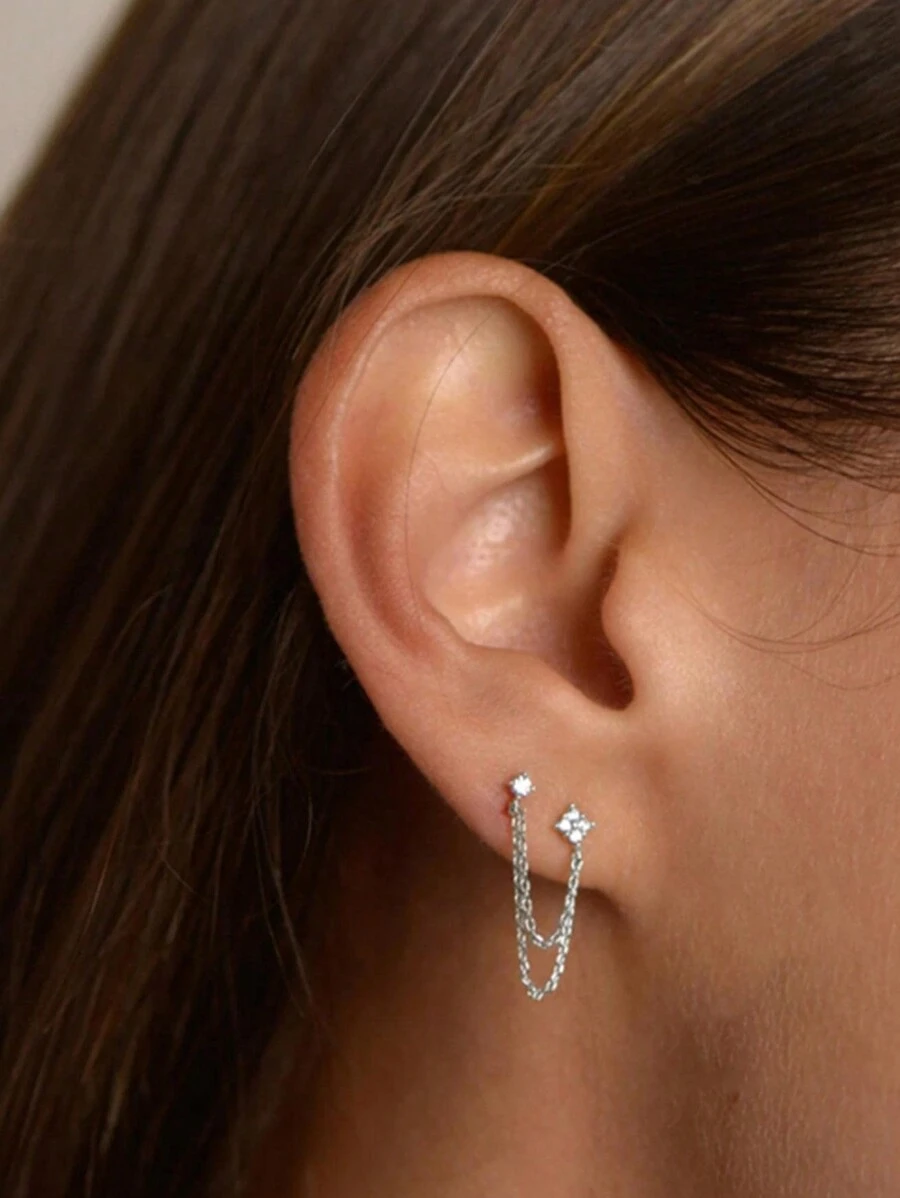 1 对奢华流苏 925 纯银耳环女士耳坠软骨精美珠宝婚礼派对周年纪念