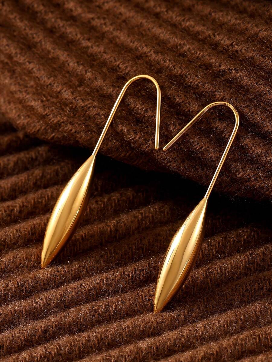 1 对不锈钢 18K 镀金泪滴形耳环,适合日常佩戴的女士时尚耳环