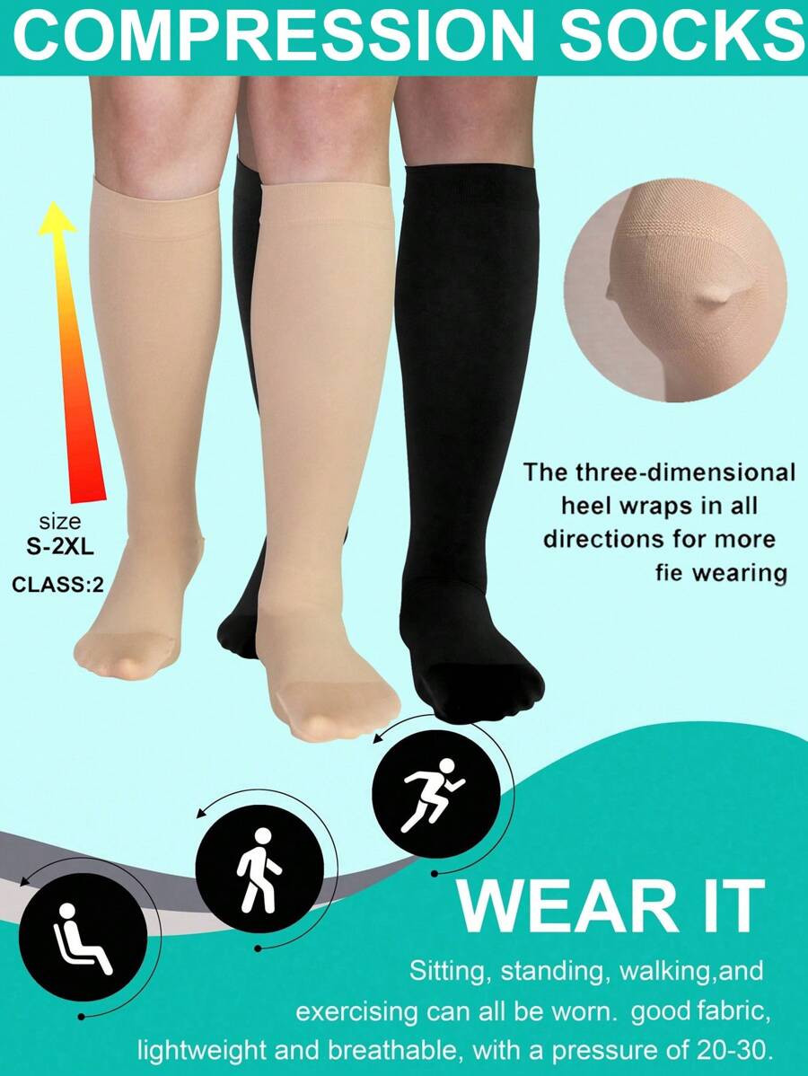 1 双男女通用压缩袜,舒适材质及踝高筒,休闲肤色女袜,日常黑色短款压缩男袜,适合运动、瑜伽、足球、跑步、旅行、工作、腿部和膝盖支撑,Y2K
