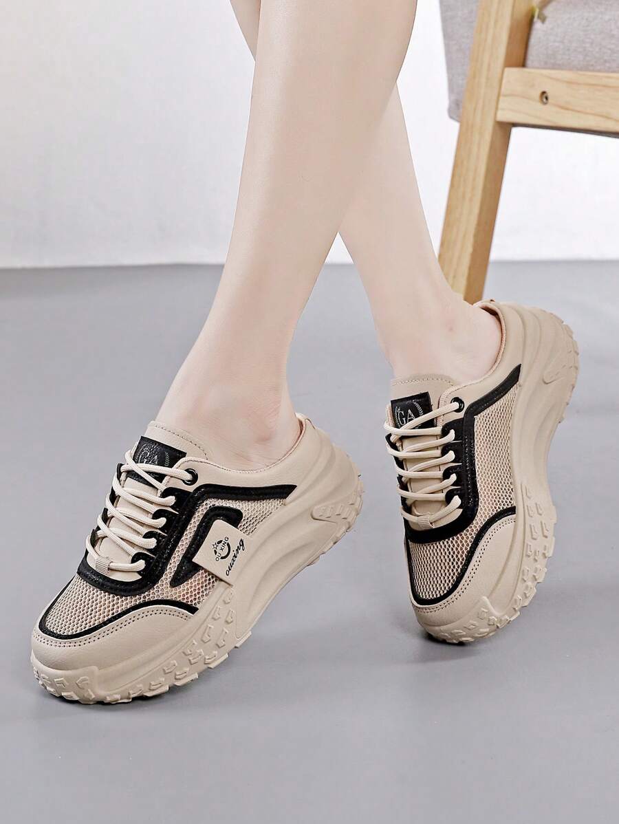 1 双女士透气时尚休闲鞋,带网眼系带,舒适户外运动厚底运动鞋