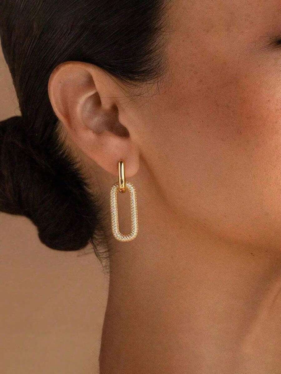 1 对女士时尚简约精致方形环状吊坠耳环,轻巧的回形针设计,优雅美观,适合日常佩戴,馈赠佳品