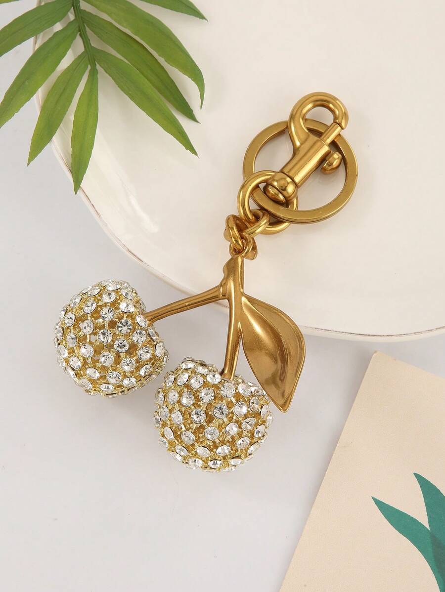 1个闪亮水钻樱桃装饰包包挂件钥匙扣 - 樱桃、苹果、梨、草莓挂件,汽车配件,钥匙圈,女士礼物,圣诞节,情人节