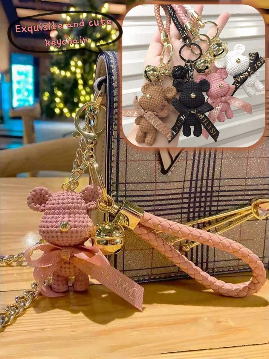 1 件/2 件/3 件/4 件卡通树脂泰迪熊钥匙扣带铃铛 3D 小雕像背包挂件卡通泰迪熊汽车钥匙扣吊坠礼物,创意可爱钥匙扣万圣节配饰教师节包挂绳带身份证夹汽车配饰包饰