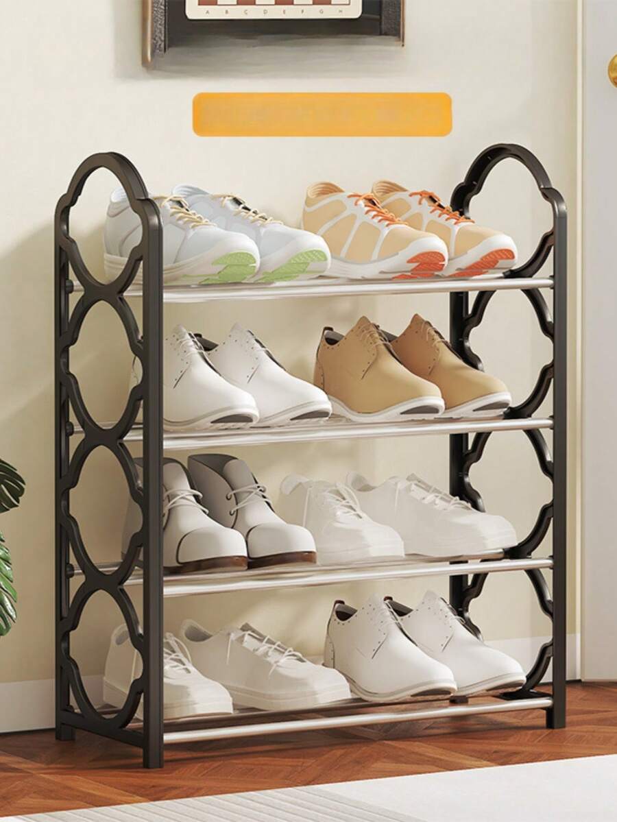 1 件 4 层鞋架收纳架,黑色带白色装饰,不锈钢和塑料 - 节省空间,易于组装,非常适合入口和走廊,多隔层设计,适合运动鞋和休闲鞋,鞋子收纳收纳架,实用架