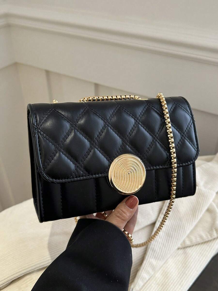 1個時尚刺繡線女士內衣迷你方形袋,翻蓋開口金屬鏈肩背袋,適用於女性的日常休閒使用