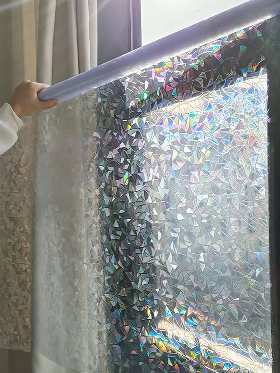1卷44.5厘米宽3D全息彩虹装饰半透明静电吸附无胶窗膜,彩色乙烯基玻璃窗贴,适用于客厅窗帘、圣诞派对、LPS圣诞背景。
