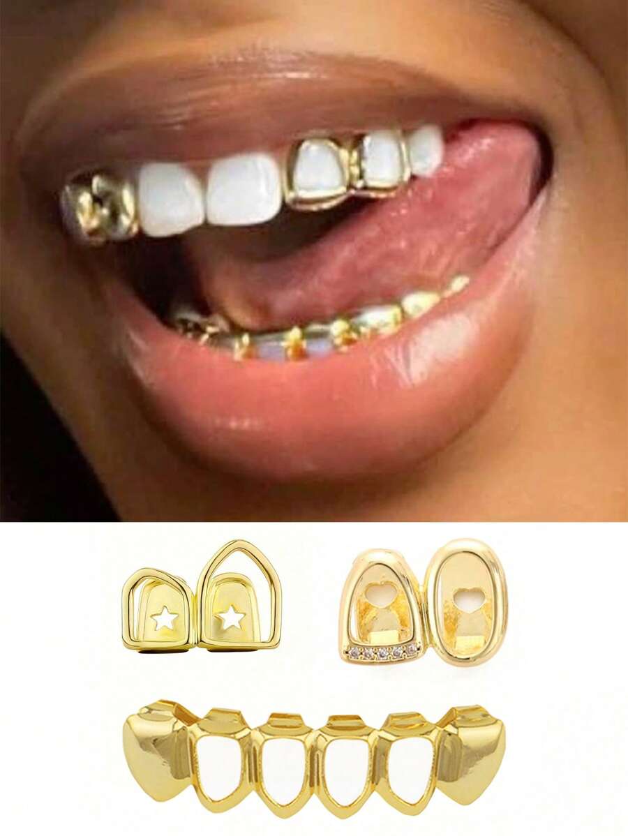 1 套独特空心组合空心侧氧化锆装饰 6 齿嘻哈牙套,有趣的服装配饰,日常/舞台服装,节日礼物,包括牙模
