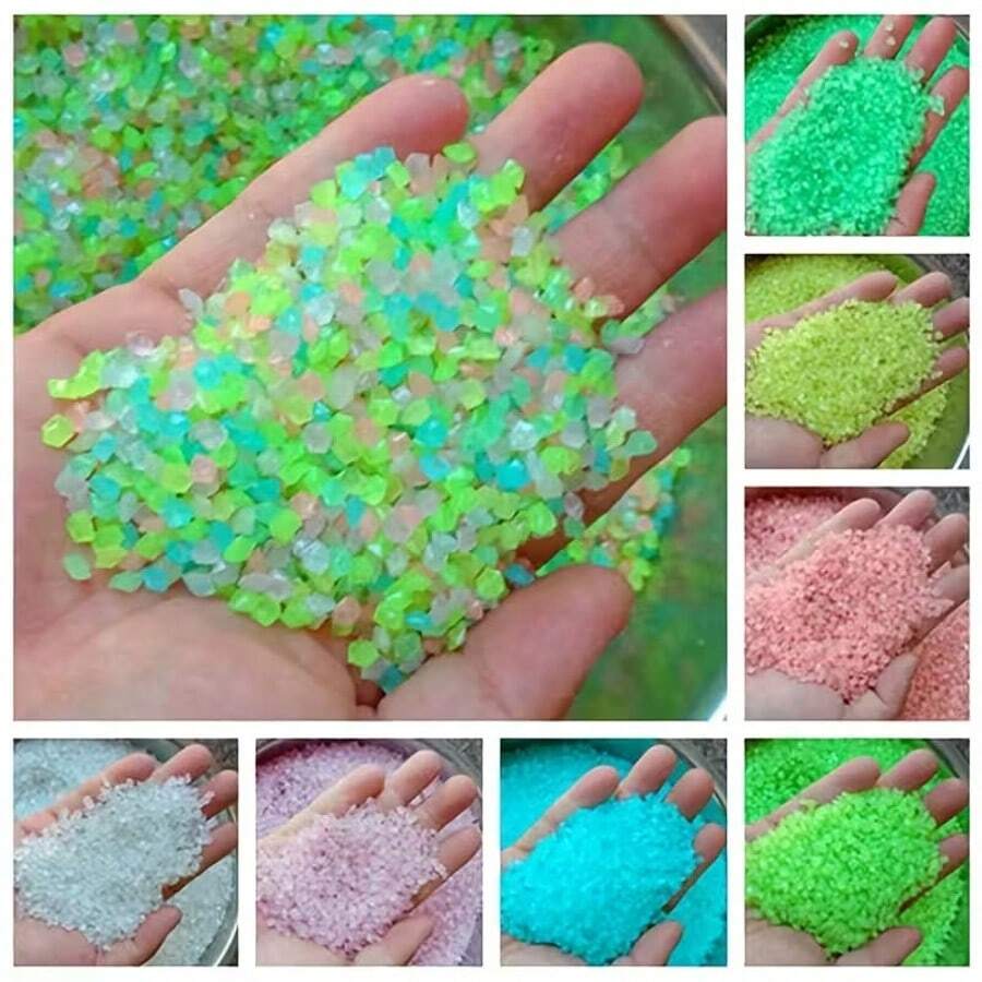 1000颗夜光树脂鹅卵石 - 发光花园石,适用于仙女花园、盆景和水族箱 - DIY微景观装饰,仙女花园配件