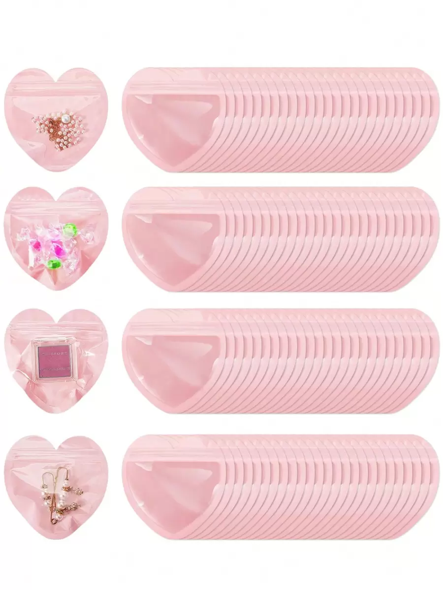100个/50个/20个装心形首饰袋,粉色可重复密封拉链袋,可爱粉色透明零钱包,适合单身派对、婚礼季、毕业季、生日派对、迷你礼品包装……返校季