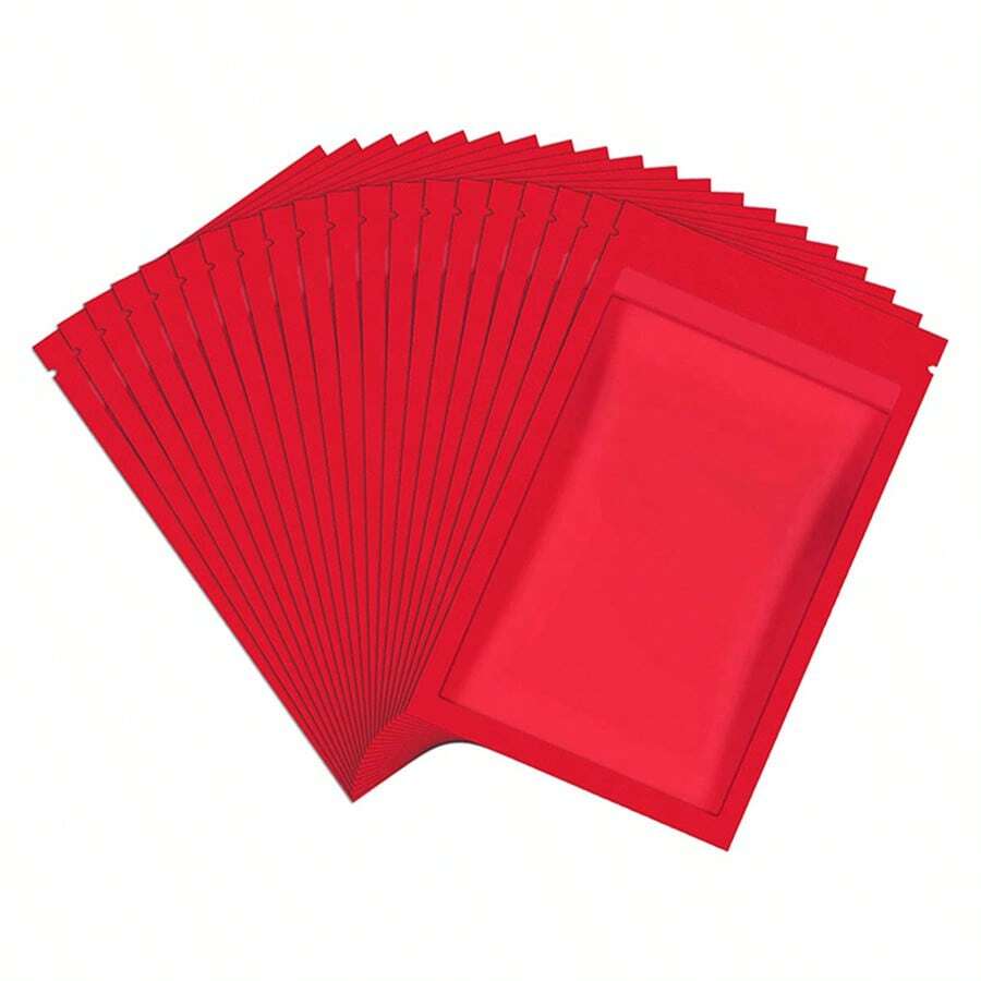 100 个哑光红色可重复密封铝箔袋,迷你自封袋铝箔拉链聚酯薄膜袋,礼品包装袋非常适合新年派对礼品装饰糖果 DIY 巧克力咖啡坚果食品长期储存小型企业用品