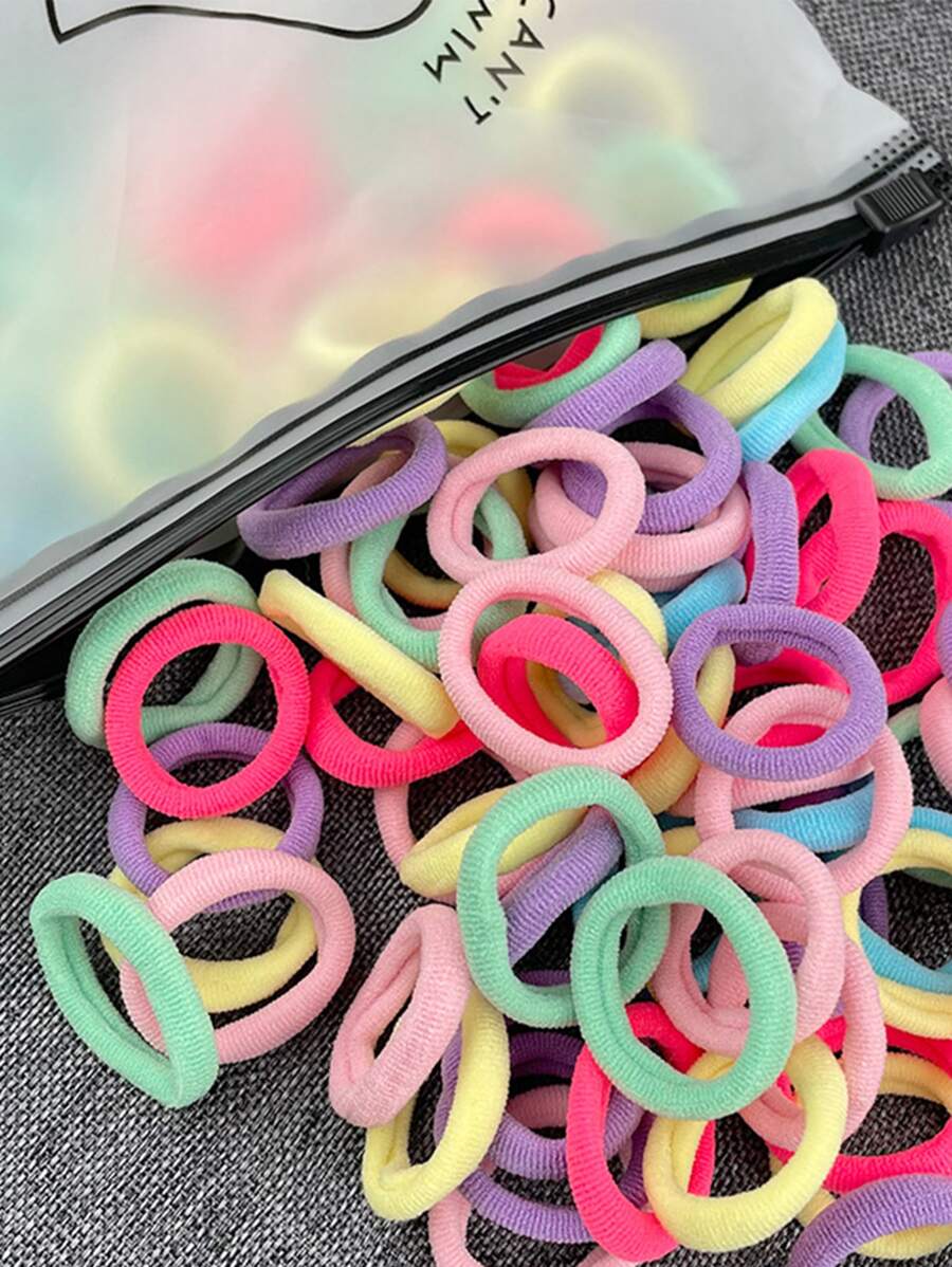 100个装女士纯色发圈,弹性发圈,不伤发,马尾辫扎发器,休闲发绳,头饰