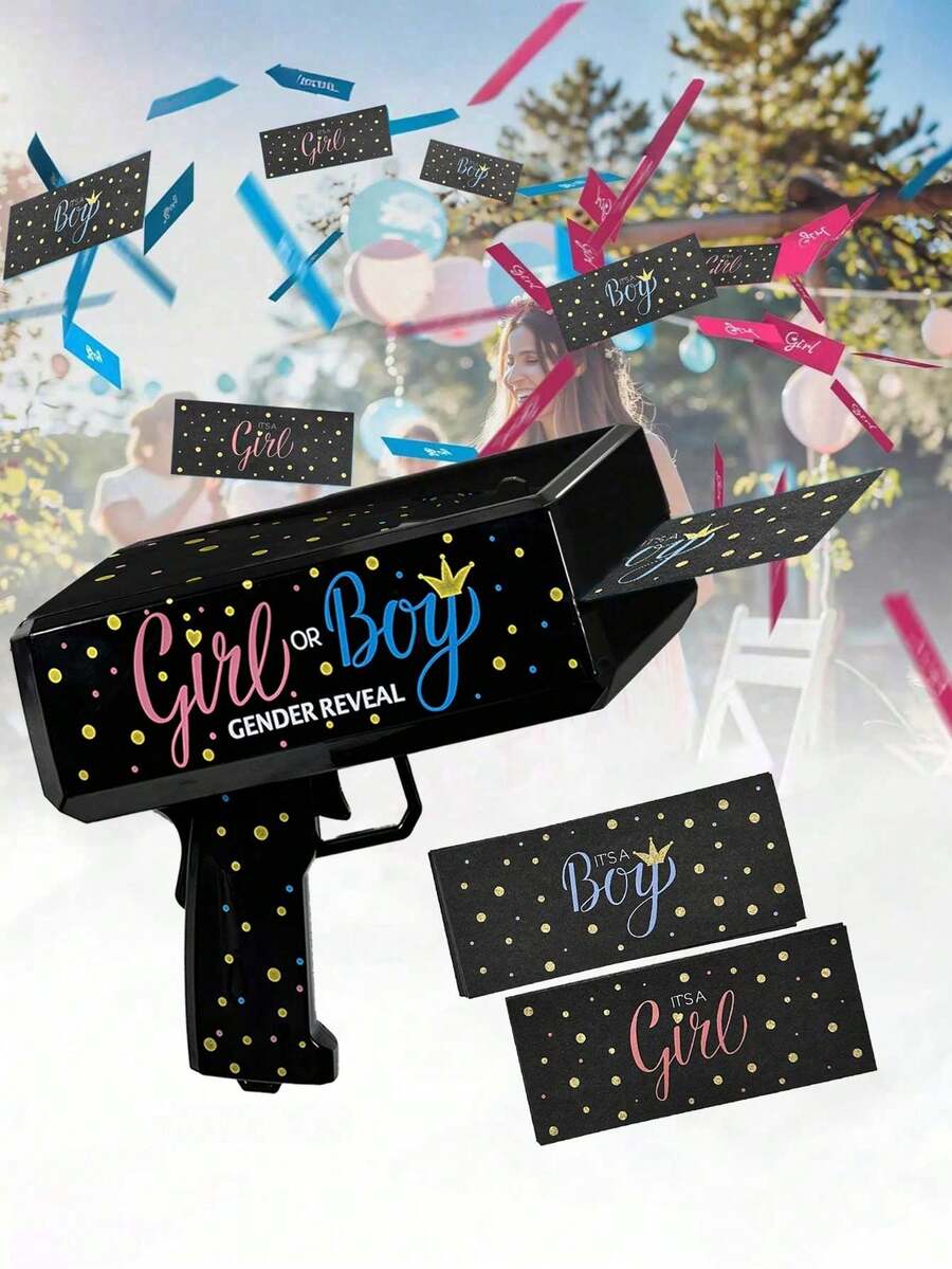 101件/套 - 黑金皇冠性别揭晓彩纸礼炮,包含黑金、粉蓝三色彩纸和礼炮,是性别揭晓派对、迎婴派对、男孩/女孩破冰游戏的理想之选。(注:需3节AAA电池。)