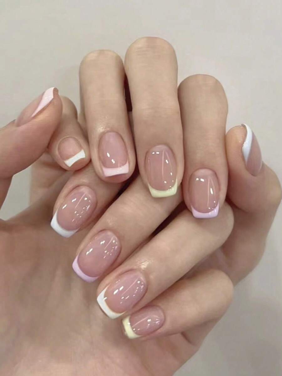 10 件 XS/S/M 杏仁形粉色透明白色法式渐变法式中性指甲日式风格按压指甲杏仁形按压指甲超短指甲用品假指甲艺术短指甲凝胶指甲贴纸指甲套装指甲套装礼物创意给孩子装扮配件和 1 个迷你指甲锉和 1 片粘性标签