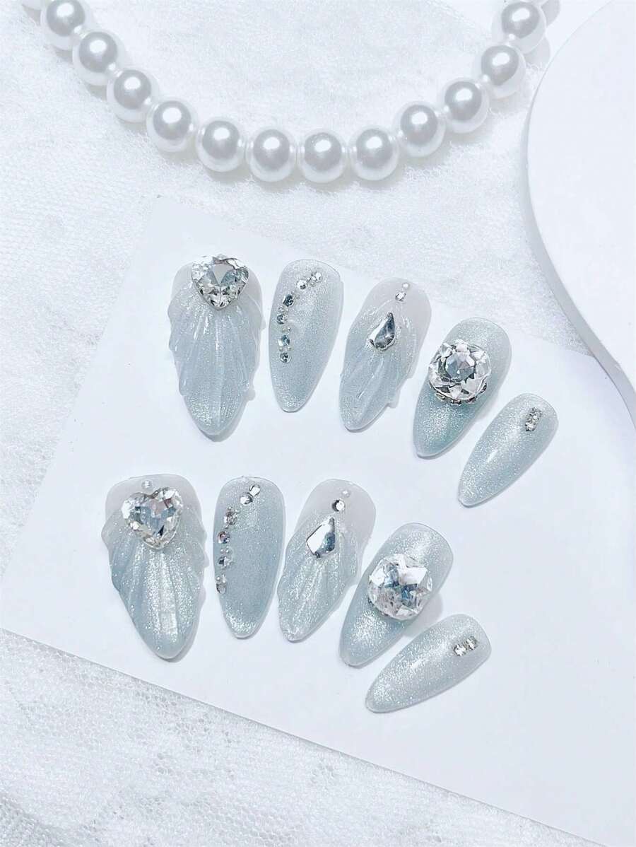 10 件手工按压式假指甲假指甲贴指甲贴纸腮红指甲饰短指甲假指甲指甲钻脚趾甲鸭指甲指甲胶长指甲指甲油凝胶指甲油聚凝胶水钻装饰指甲用品指甲