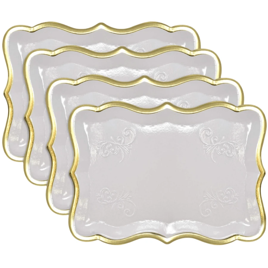 • 10个9英寸×13英寸优雅白色金边一次性纸盘,白色长方形一次性纸盘,带金色镶边,适合甜点展示、餐桌派对、宴会和其他场合,设计优雅,可用于盛放纸杯蛋糕衬垫,生日派对、婚礼、新娘送礼会、野餐和日常家庭使用。 - 白色食品卡燙金光油 - 查看 4