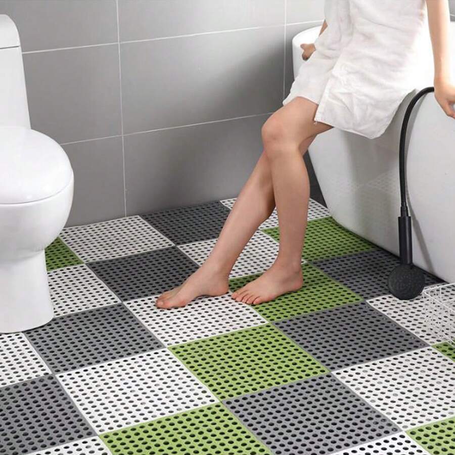 10 件互锁 PVC 地垫,30cmx30cm,防水防滑,浴室排水垫,淋浴房瓷砖地毯,可定制,防滑/防潮/防水/防污,家居浴室装饰,夏季返校季