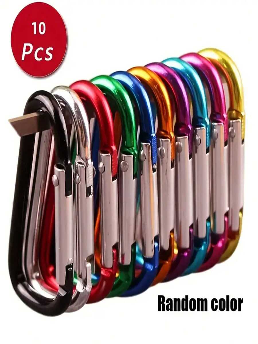 10 件混色铝制登山扣钥匙扣,露营配件,钓鱼,徒步旅行和钥匙扣,随机颜色钥匙扣夹,用于挂包