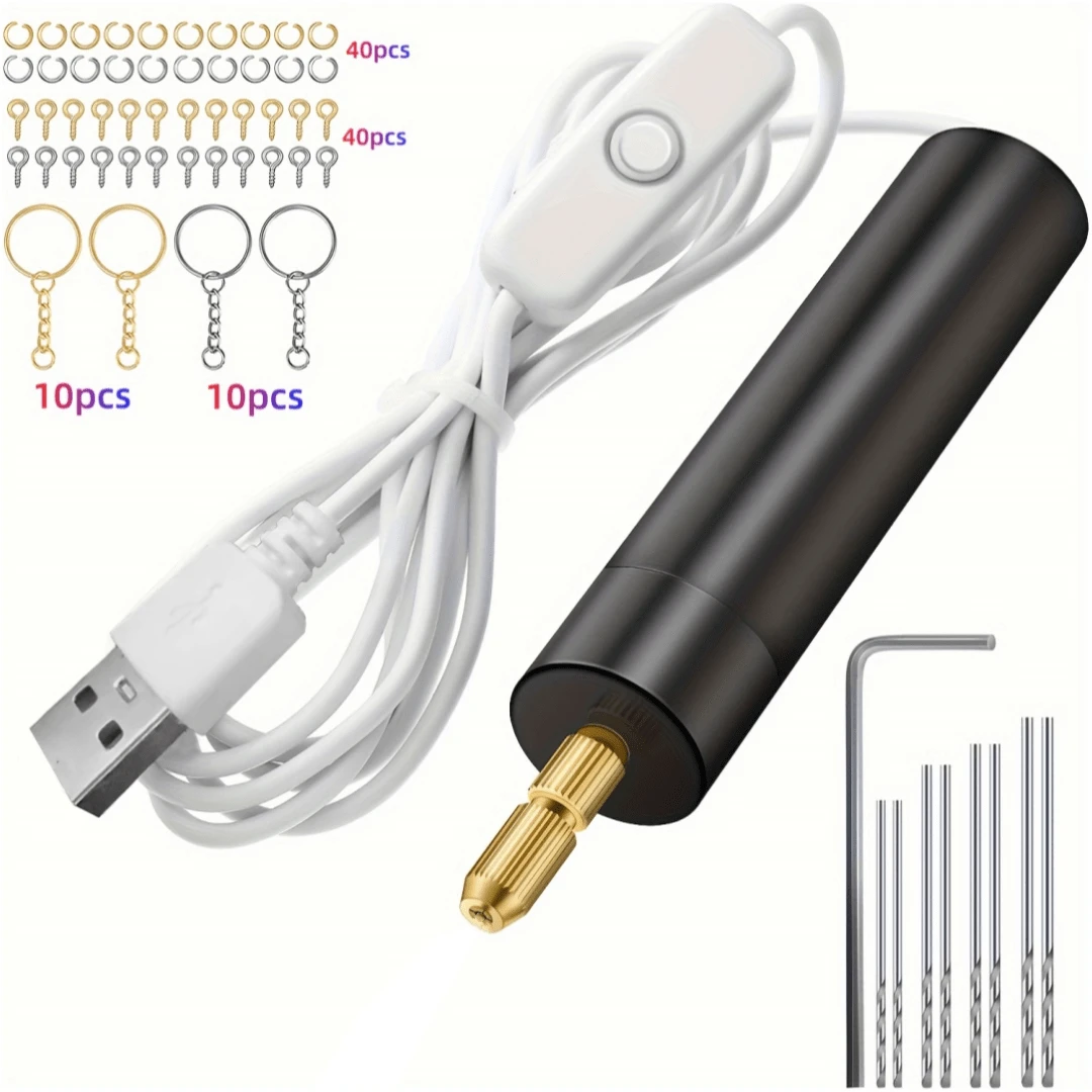 110入組電動手鑽工具套件,鑄模用途,搭配電動手鑽半自動鑽夾套件 (含8個鑽尖(0.8-1.2mm),20個鑰匙扣,40條環形眼針和40個開口眼釘 )。適用於使用樹脂、塑料、木材、聚合粘土等材料製作珠寶、鑰匙扣、吊墜。