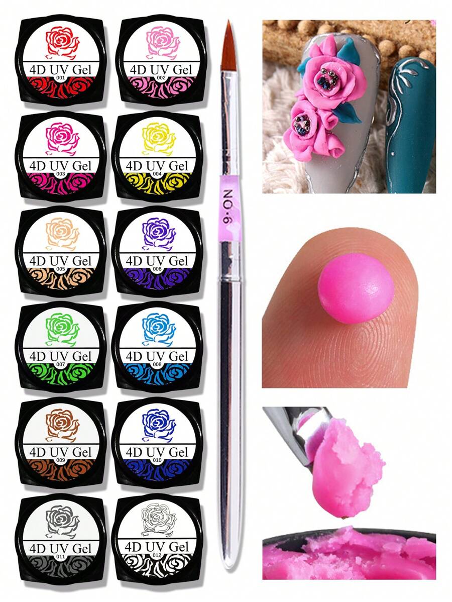 TWOING 12色套裝指甲藝術配件雕刻膠用品3d 4d模型雕刻泥塑料紫外線膠diy指甲油彩繪可拆卸3d浮雕膠