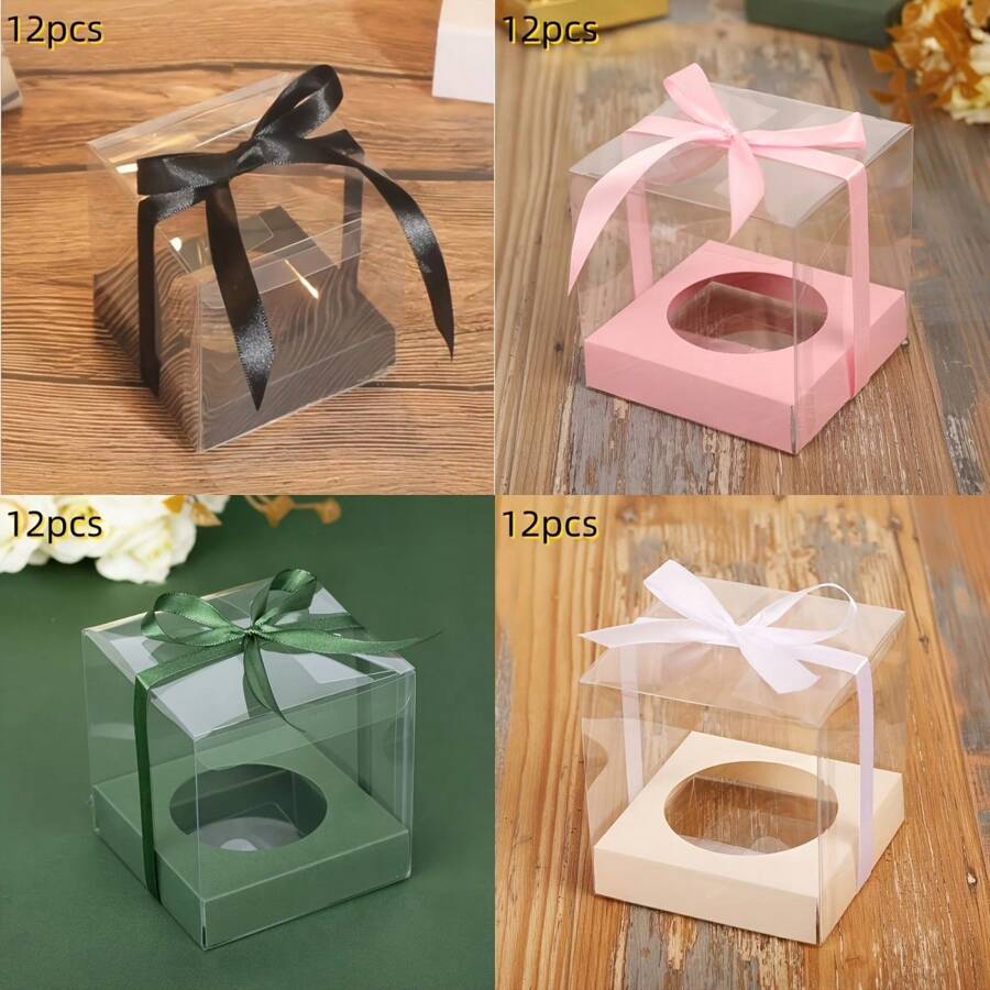 12个装 9*9*9厘米/3.54*3.54*3.54英寸PVC方形透明糖果礼盒巧克力糖果盒首饰收纳盒婚礼圣诞包装礼品盒母鸡派对袋