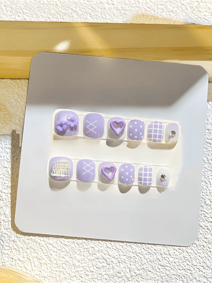 12 件/套短款丙烯酸美甲贴片,带有花卉、蝴蝶和抽象图案,3D 浮雕可爱指甲贴纸装饰,是送给女性和女孩的理想圣诞节和新年礼物