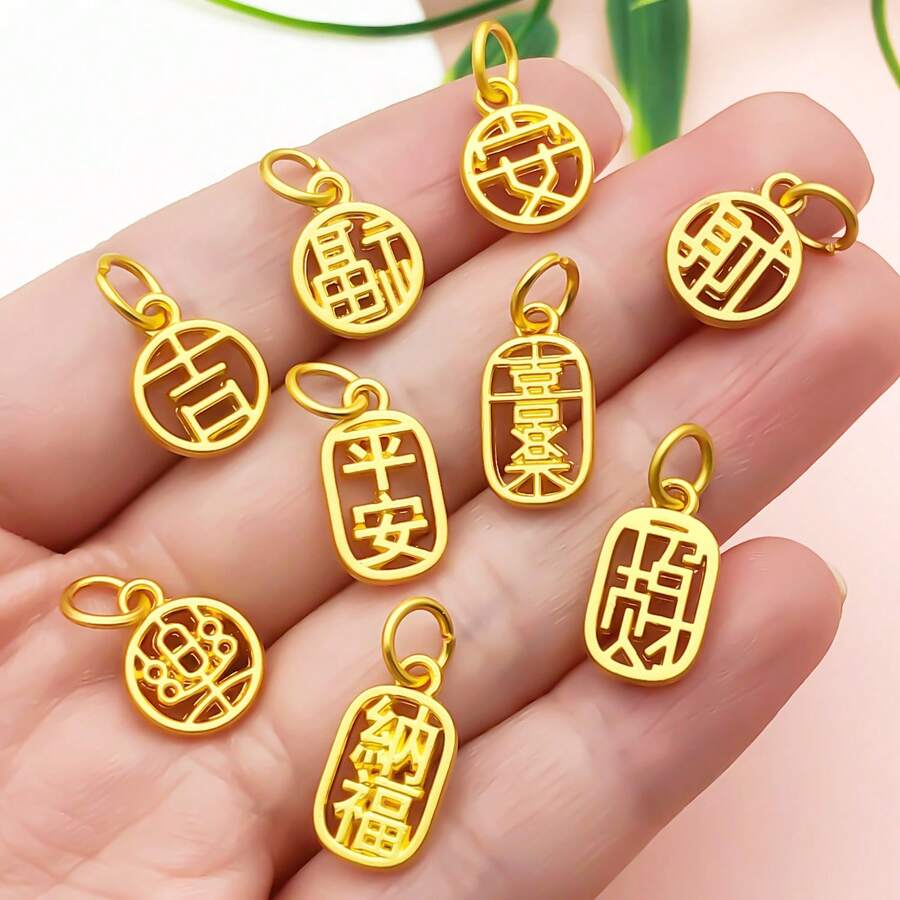 12 件哑光金纯文字吊坠套装(传统工艺)- 珠宝制作用品,适用于项链、耳环、手链和钥匙扣