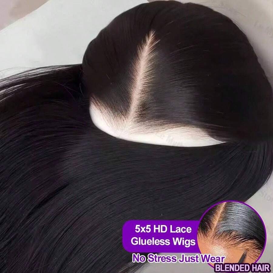 • 13x4英寸逼真高清无缝5*5全蕾丝前额假发,200%密度混合真人发,预修剪漂白发结直发假发,26英寸女士预修剪高清蕾丝前额假发带婴儿发 - 自然色&黑色系 - 查看 11