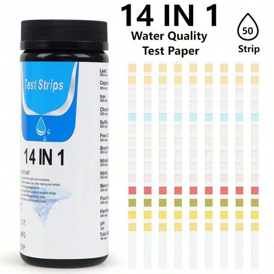 14合1水質測試試紙,適用於多種水池,檢測氯、ph值、鹼度、硬度,適用於飲用水、游泳池、溫泉、池塘、水族箱、工業水質