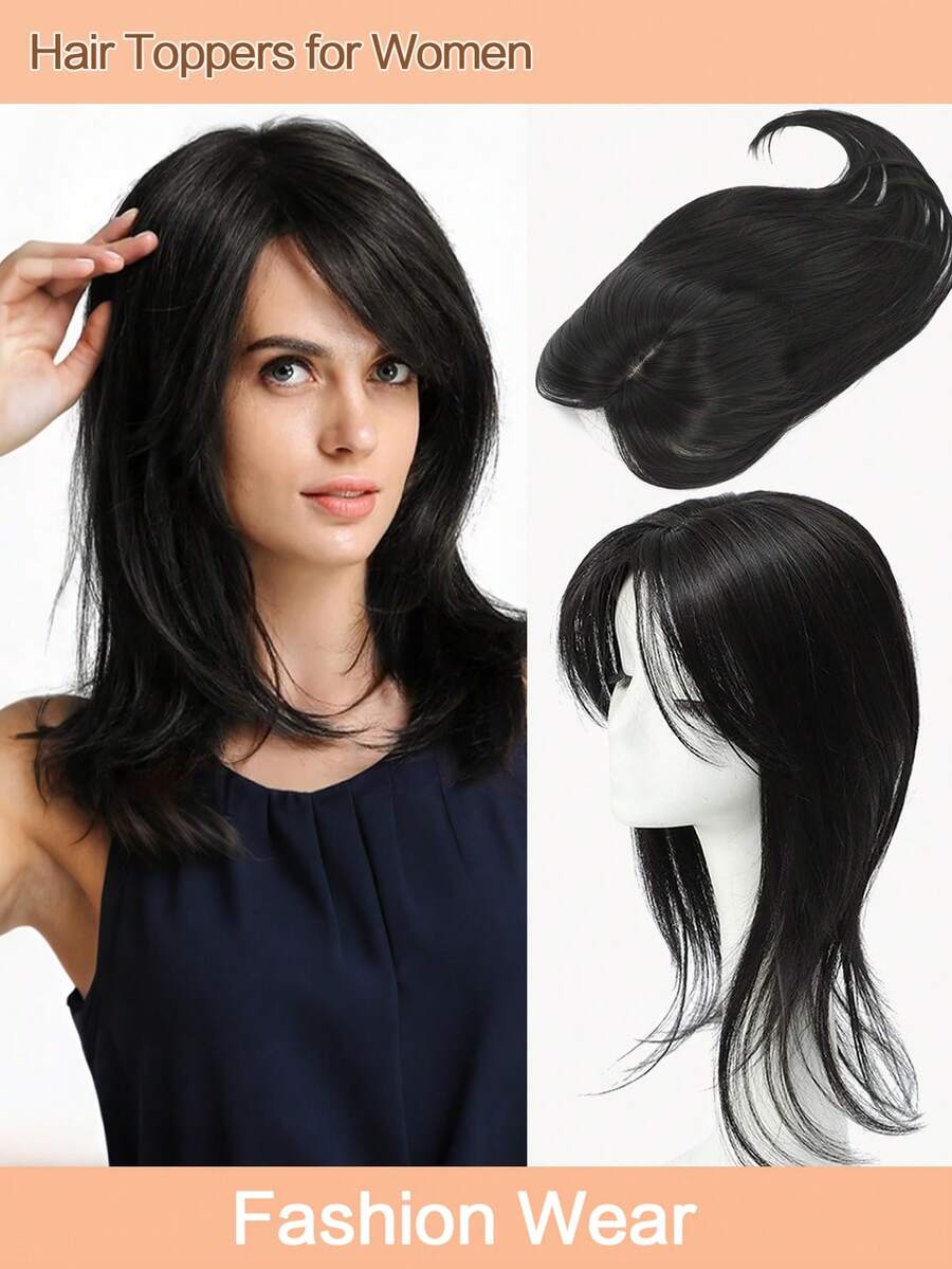 14英寸18英寸黑色女性用髮頂,女性禿頭用髮贅,合成髮髮贅,日常佩戴