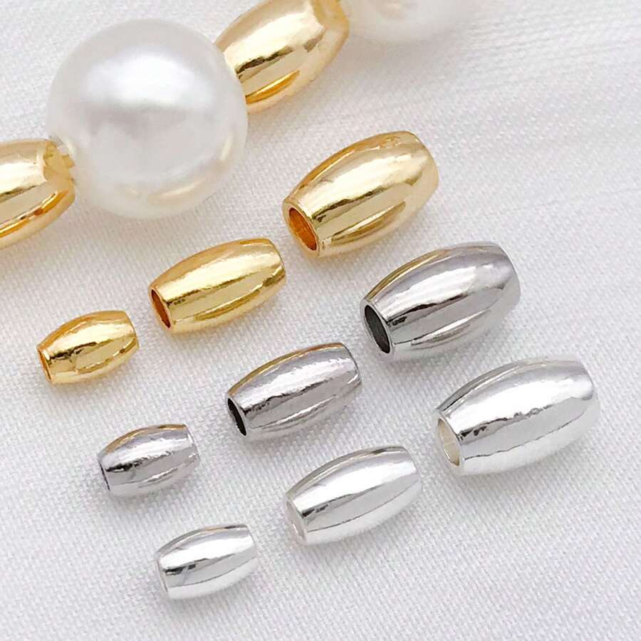 15颗18K镀金米粒珠,小椭圆橄榄形,光滑无缝,散装金属隔珠连接器,适用于珠宝制作、手链、项链、DIY工艺品配件