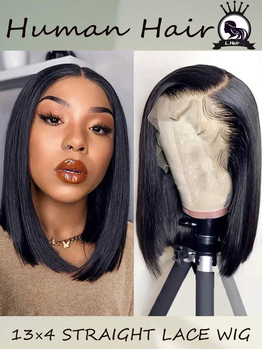 16 英寸折扣 13x4 蕾丝前波波头假发 真人头发 200 密度透明蕾丝波波头假发 女士 8 英寸短直波波头蕾丝前假发 无胶预拔婴儿头发直波波头假发 自然色 8-16 英寸女士假发