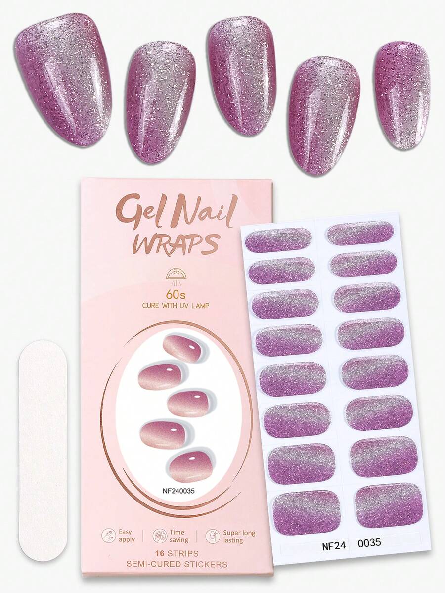 16 片猫眼半固化凝胶指甲贴,夏季粉色金属风格自粘凝胶指甲全贴,持续 14 天,需要紫外线灯,快速美甲指甲贴纸,适合女性音乐节 DIY