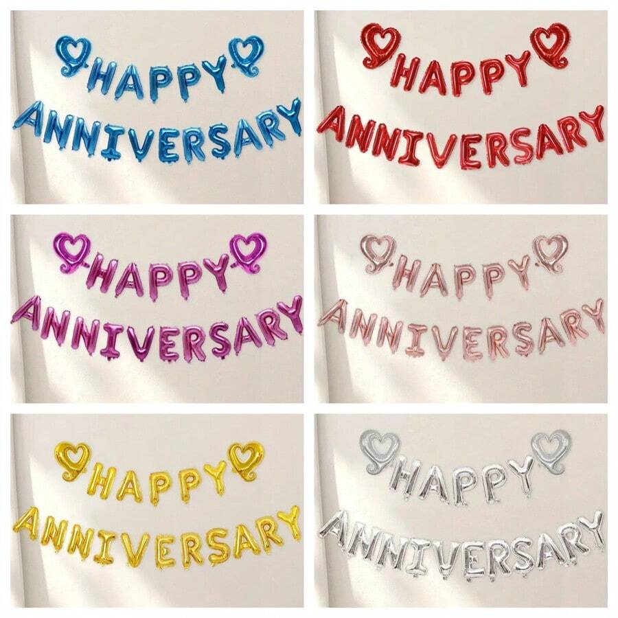 18 件周年快乐套装周年快乐爱心铝膜气球适用于周年纪念日室内外装饰,营造周年纪念氛围,圣诞节