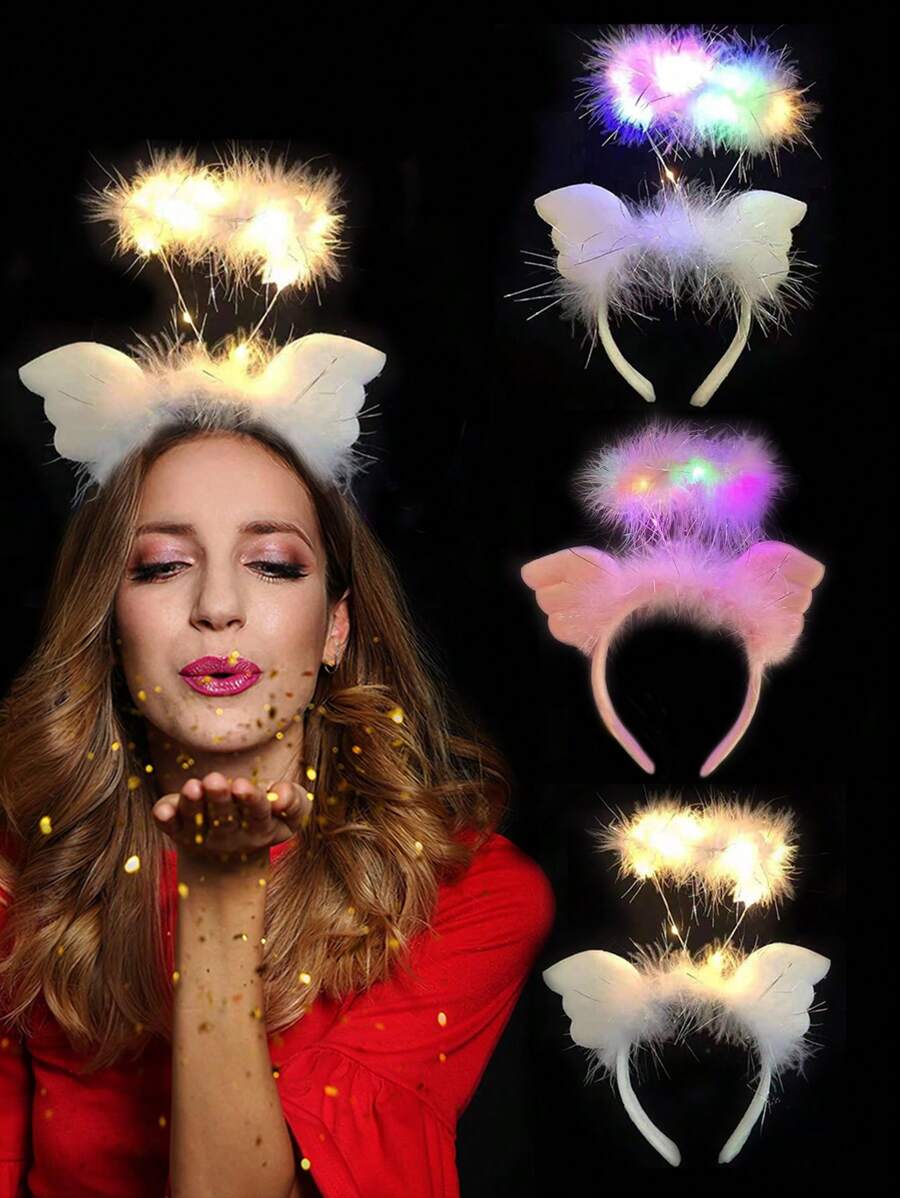 1 件/4 件 LED 发光天使发箍仙女照片闪光头带灯,适合在黑暗中发光霓虹狂欢派对狂欢节女性成人生日圣诞礼物派对用品,圣诞节