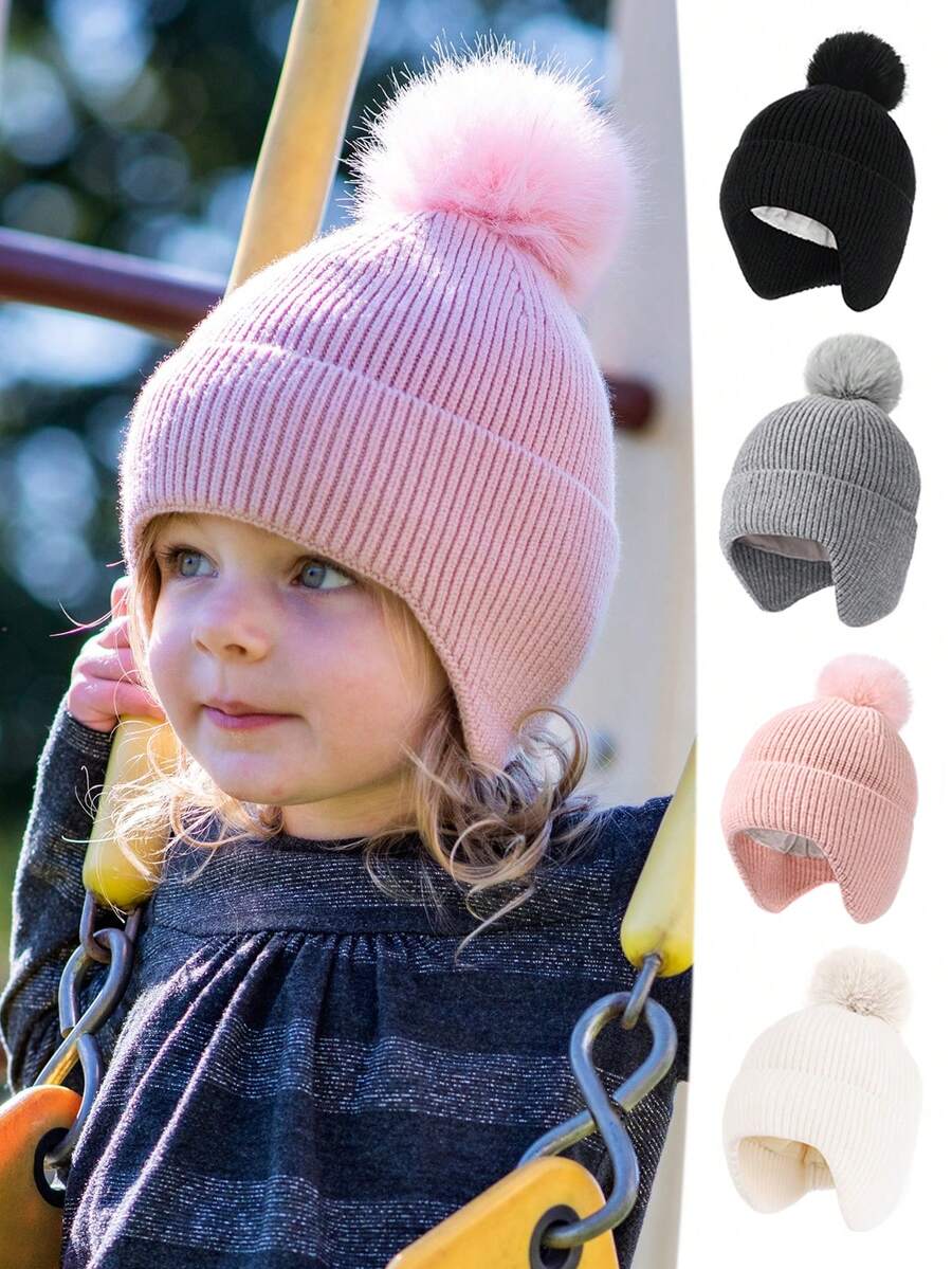1顶婴儿毛球保暖带护耳帽可爱针织节日雪帽